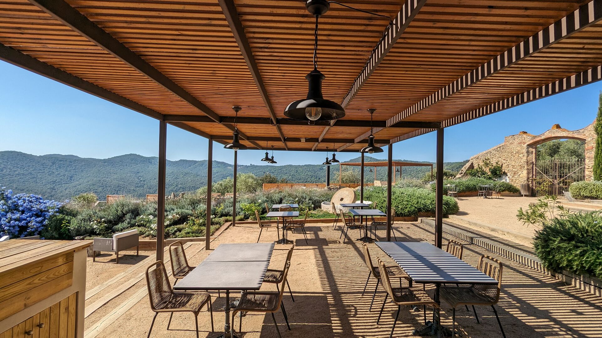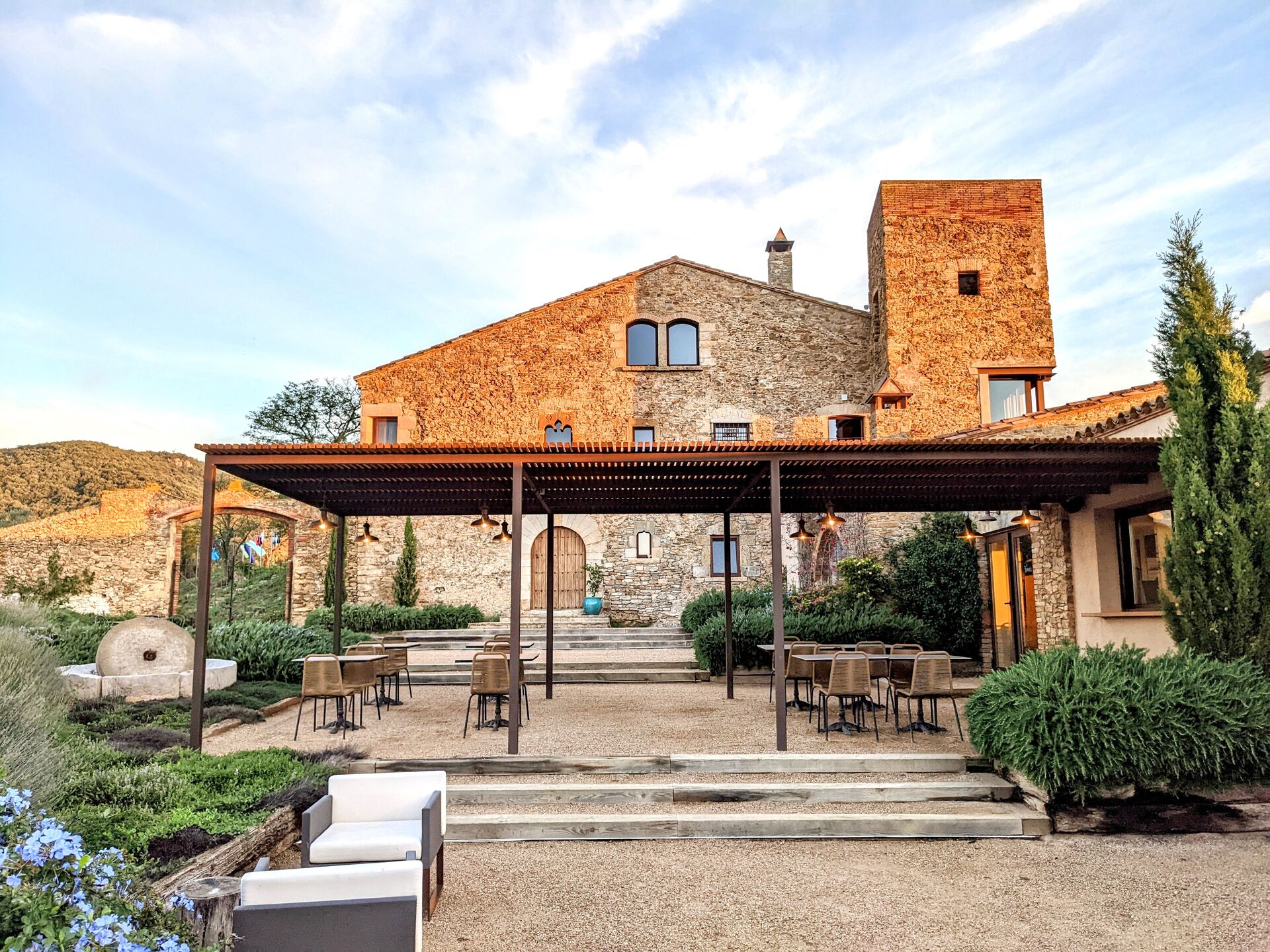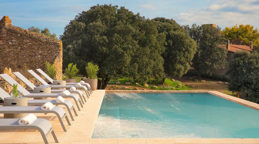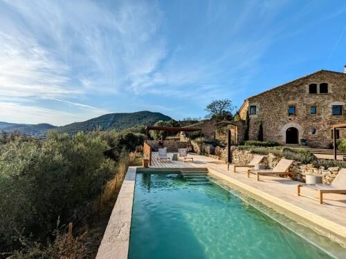 El Mas Oms es la perfecta sinergia entre una masía del siglo XV, restaurada con respeto a su esencia original, y un toque contemporáneo que aporta confort y elegancia. La calma absoluta y las vistas espectaculares en pleno Parque Natural de las Gavarres ofrecen un descanso total en conexión con la naturaleza. El hotel cuenta con 6 habitaciones cuidadosamente decoradas, una piscina climatizada, restaurante, pista de petanca, zona chill-out, servicios de masaje y yoga, alquiler de bicicletas y todo lo necesario para los ciclistas.