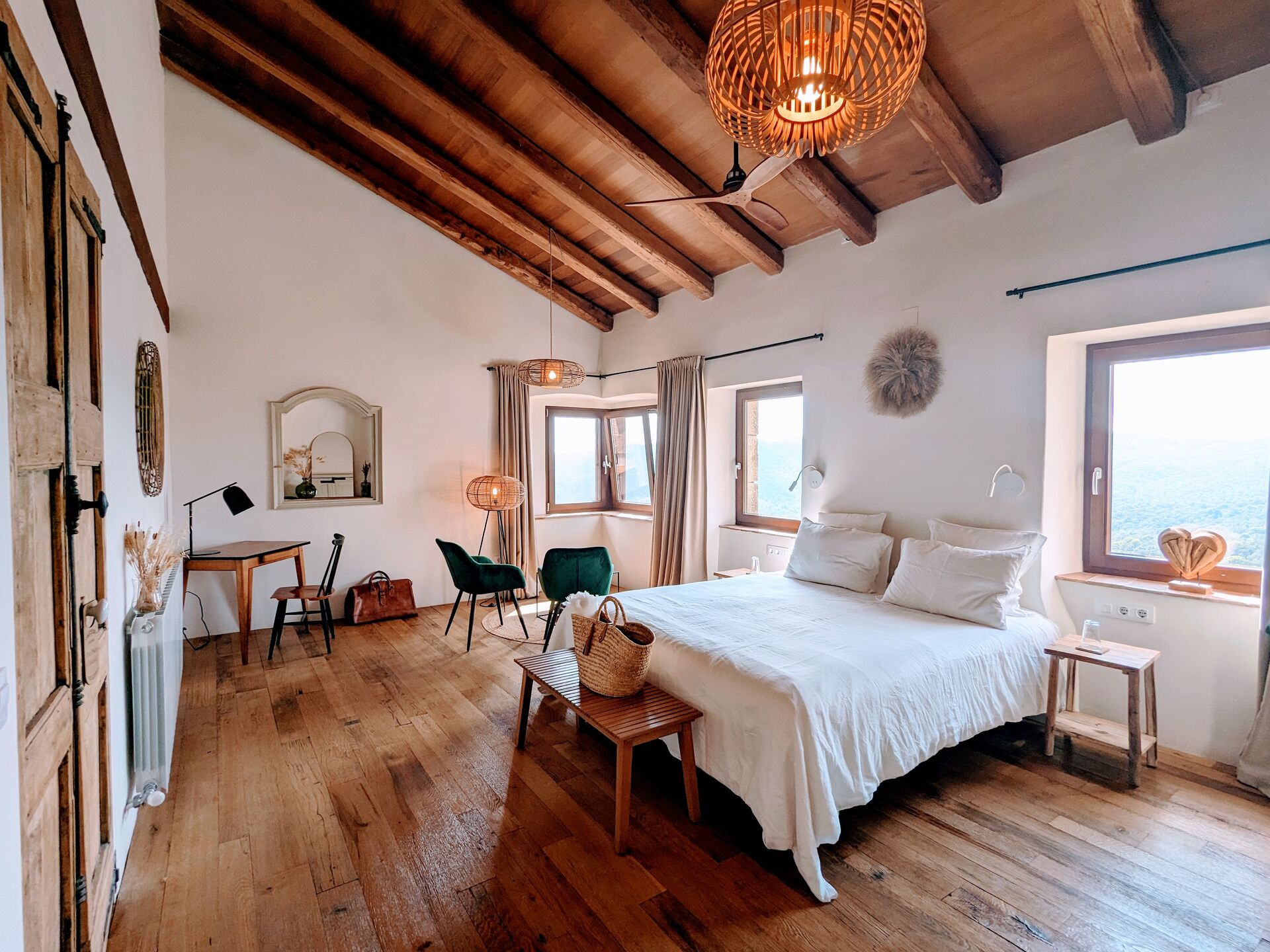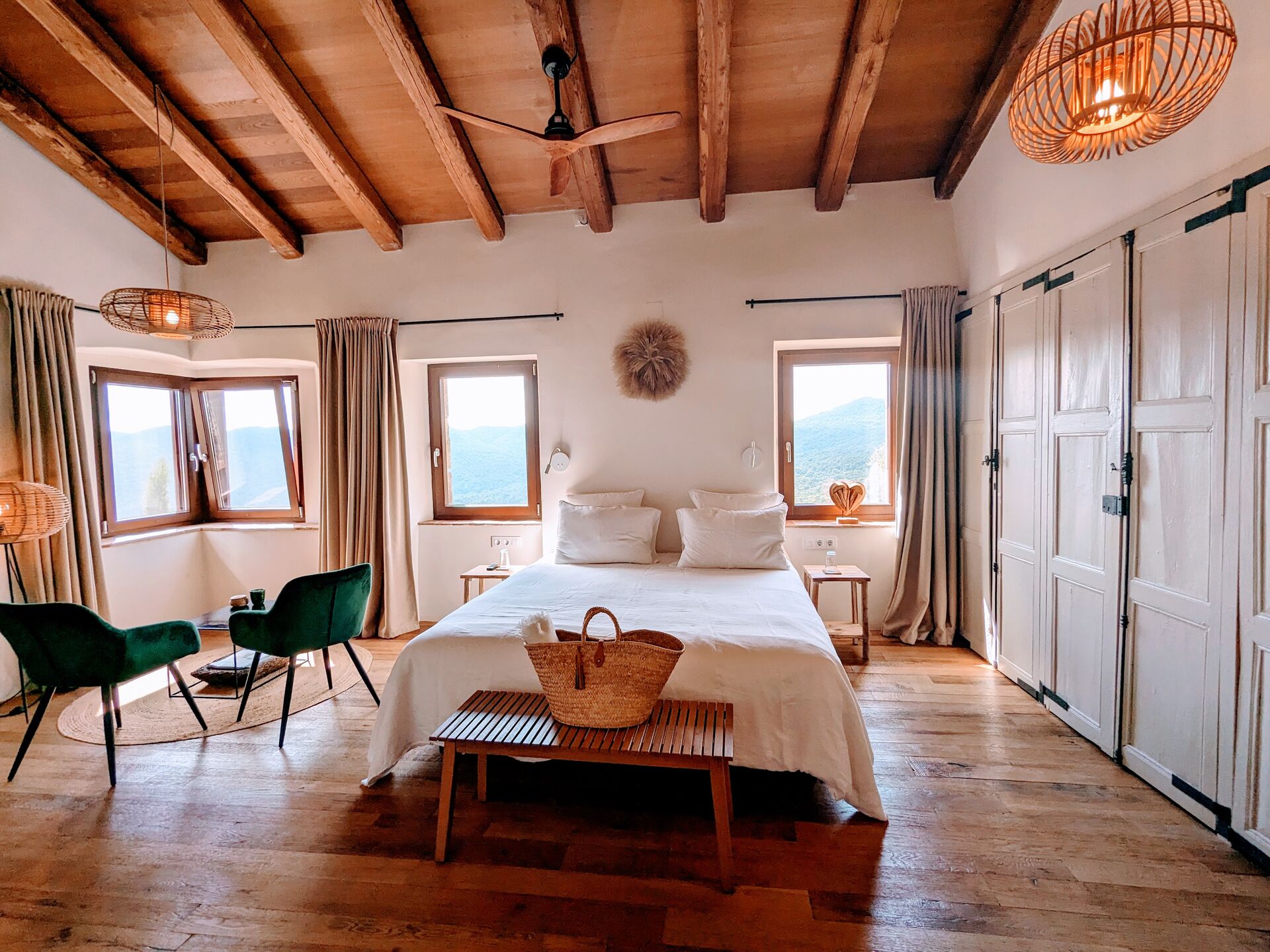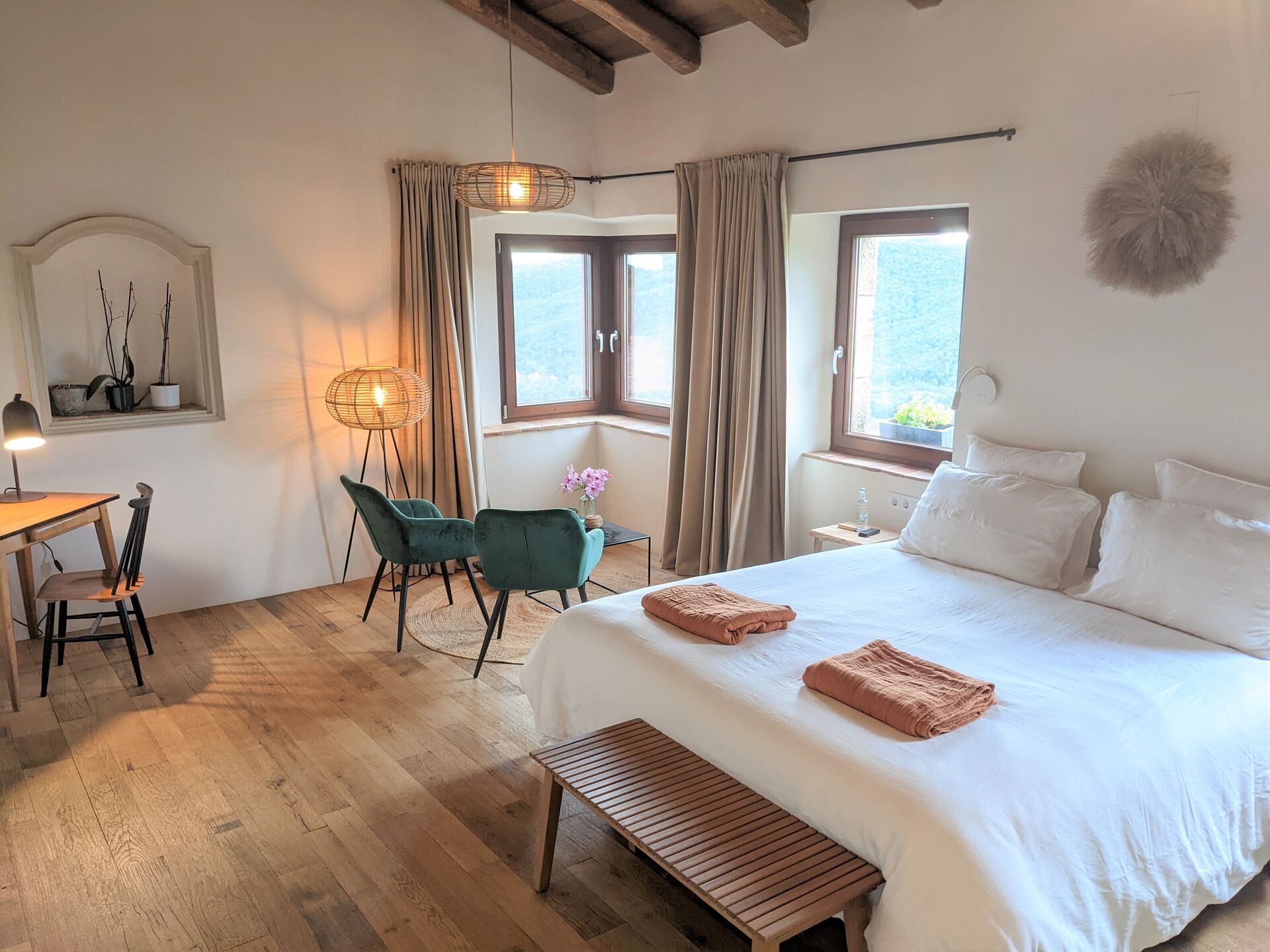 El Mas Oms es la perfecta sinergia entre una masía del siglo XV, restaurada con respeto a su esencia original, y un toque contemporáneo que aporta confort y elegancia. La calma absoluta y las vistas espectaculares en pleno Parque Natural de las Gavarres ofrecen un descanso total en conexión con la naturaleza. El hotel cuenta con 6 habitaciones cuidadosamente decoradas, una piscina climatizada, restaurante, pista de petanca, zona chill-out, servicios de masaje y yoga, alquiler de bicicletas y todo lo necesario para los ciclistas.